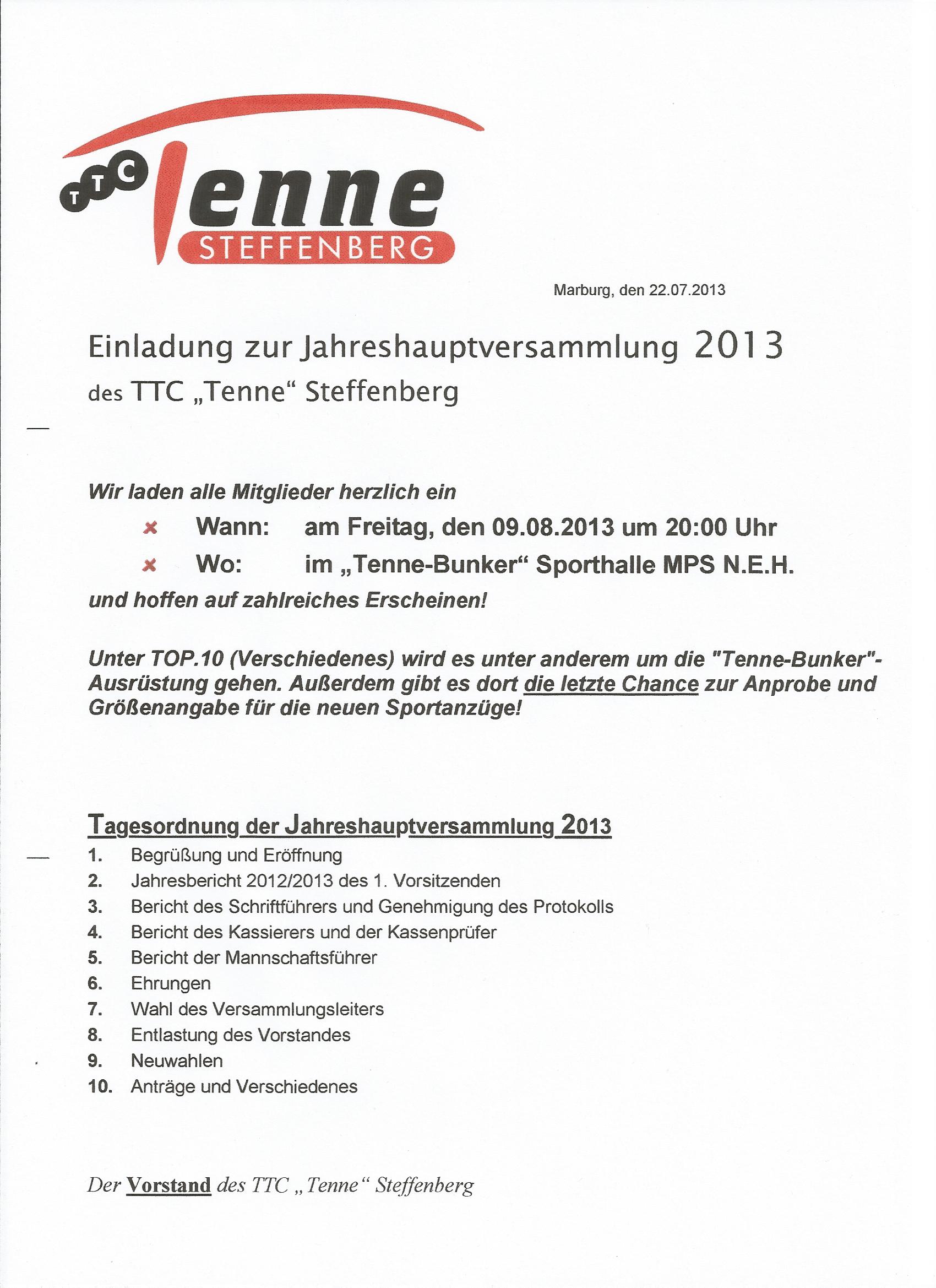 Einladung zur JHV 2013