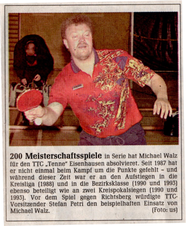 200 Meisterschaftsspiele in Serie von Michael Walz