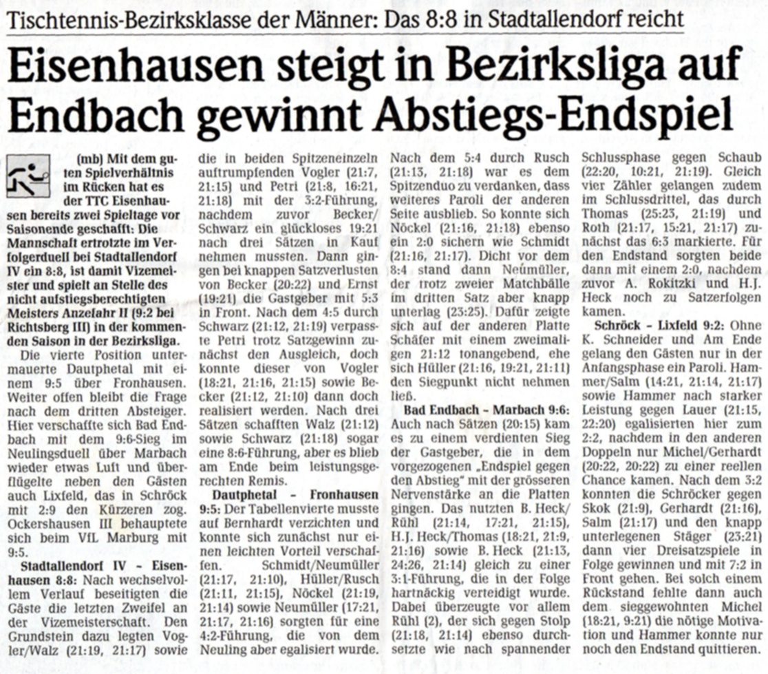 8:8 in Stadtallendorf reicht - Eisenhausen steigt in Bezirksliga auf