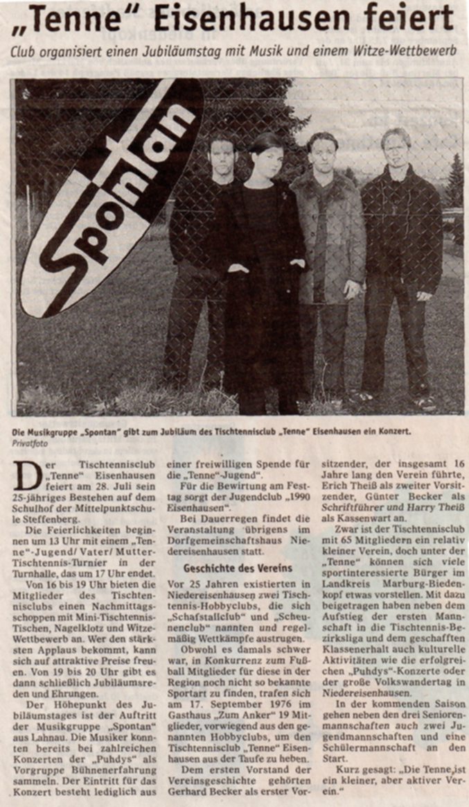 25 Jahre - Tenne feiert mit SPONTAN - Konzert auf dem Schulhof
